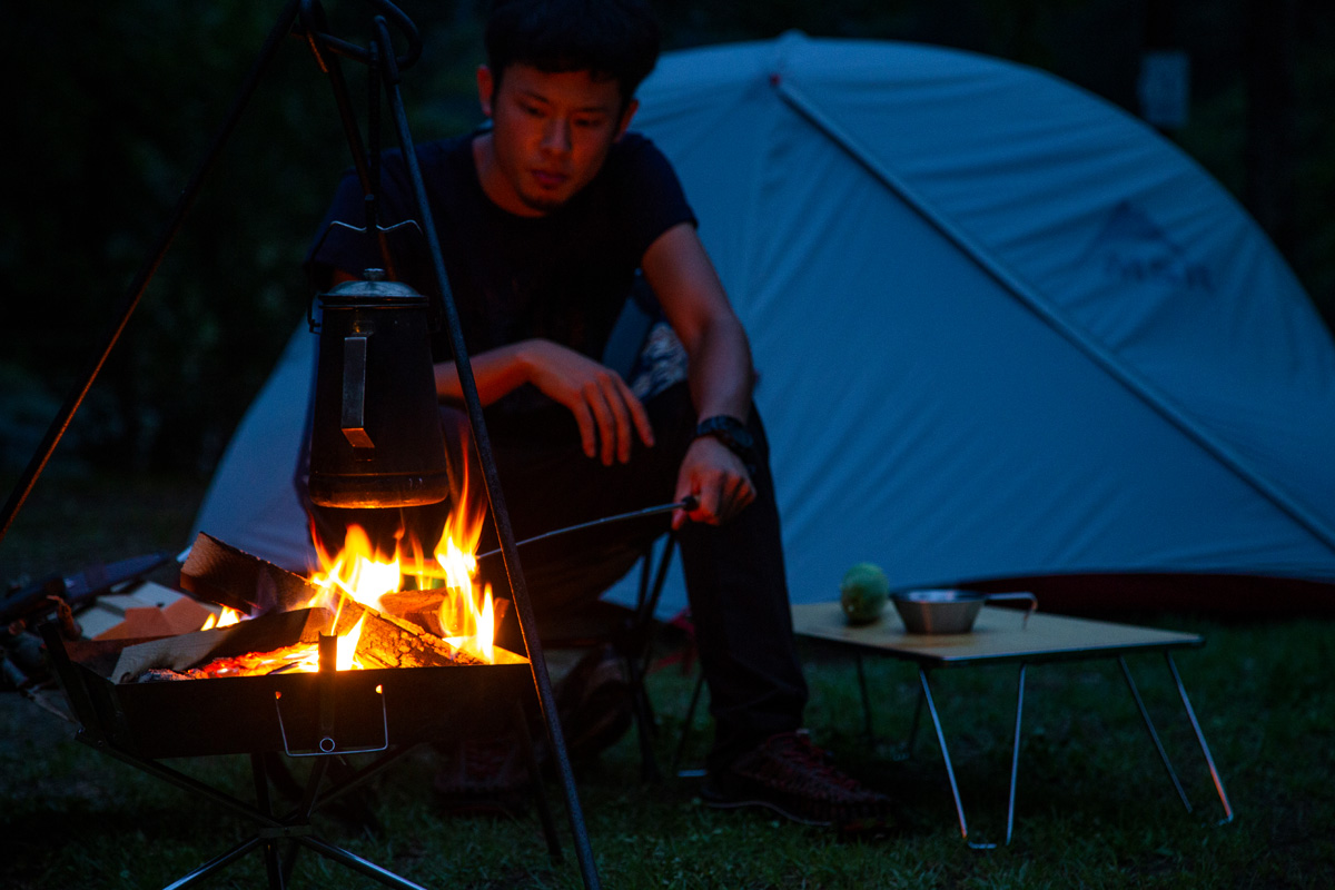 「キャンプの魅力は素の自分に気づかせてくれること。非日常の素晴らしさや焚き火の癒しも魅力です。キャンプをすると自信もつくと思うんですよ。何もないところに行って自分でテントを建てて一晩過ごすって挑戦じゃないですか。自己実現ができる遊びがキャンプの魅力だと思います」