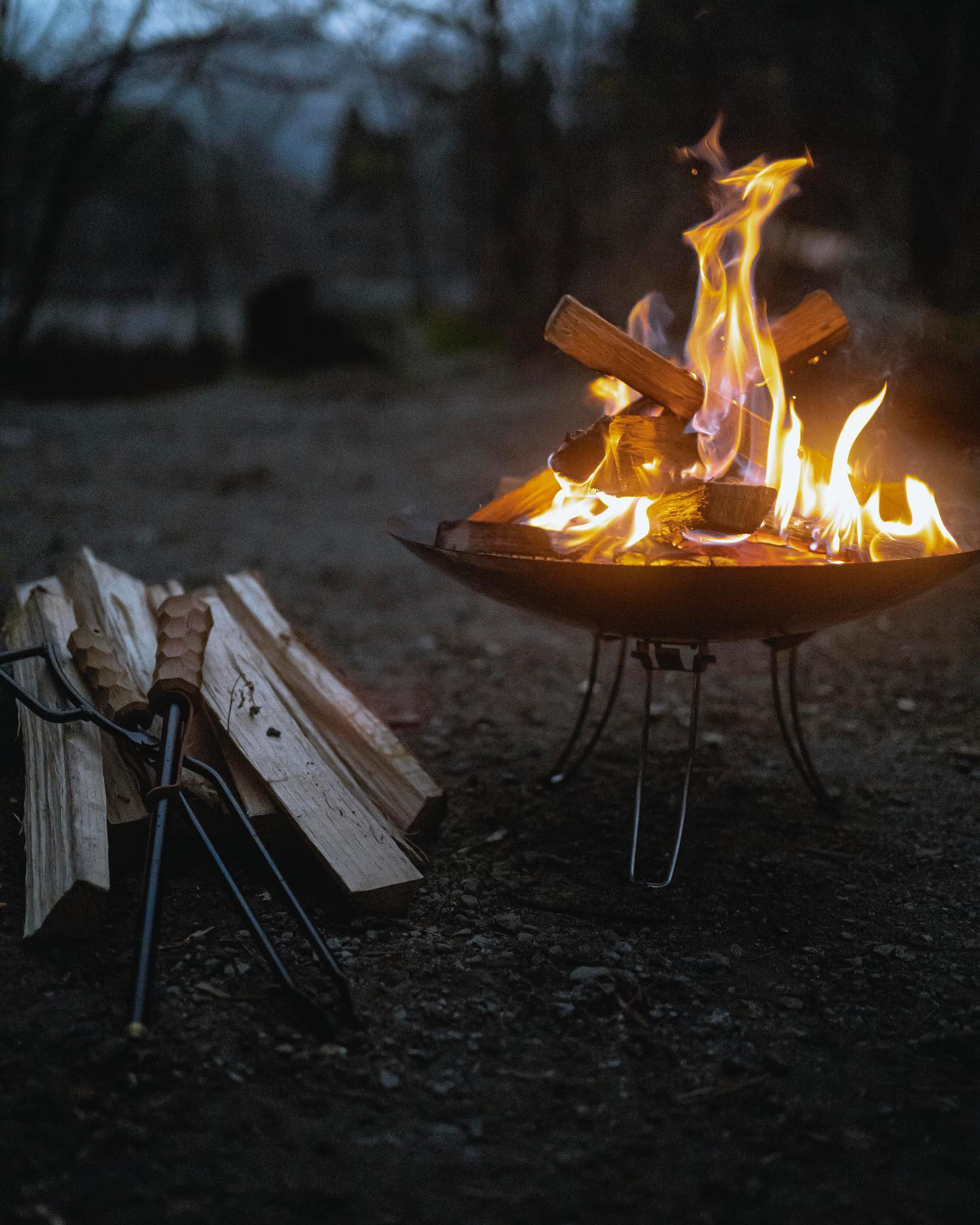 どのような種類の薪や焚火台を使うのか。