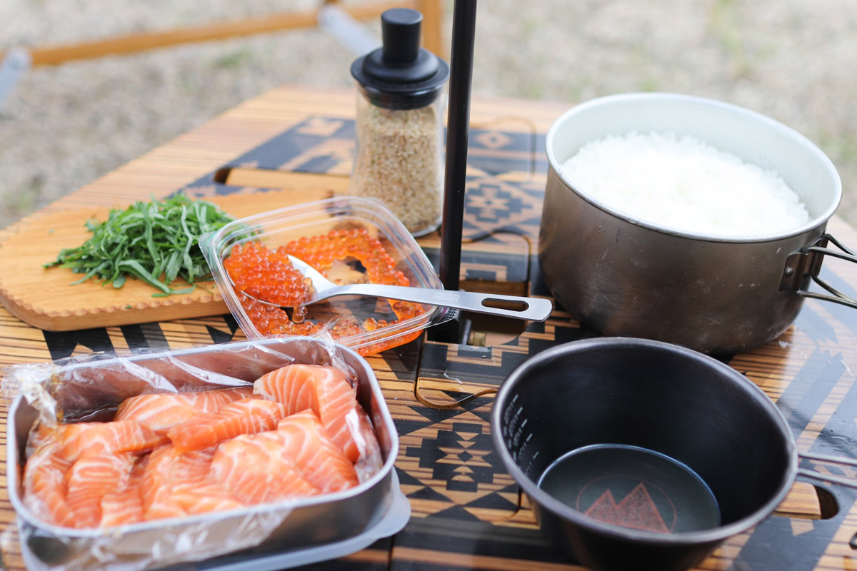 味付けを自宅で済ませておけば、炊き立てのご飯に乗っけるだけなので、忙しいキャンプの朝でもおすすめです。