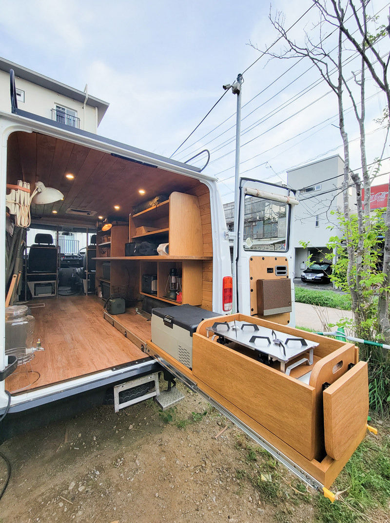 元々大工の仕事をしていた職人でもあり、海外のオシャレバンライファーのソレを彷彿とさせるセンスや独自のアイディアで、今バンライフ業界からも一目置かれている。
