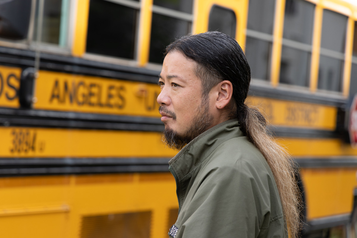 鈴木さんのスクールバスはロサンゼルスのインターナショナル社が出しているスクールバスだ。十分大きいがこれでもショートボディーだという。