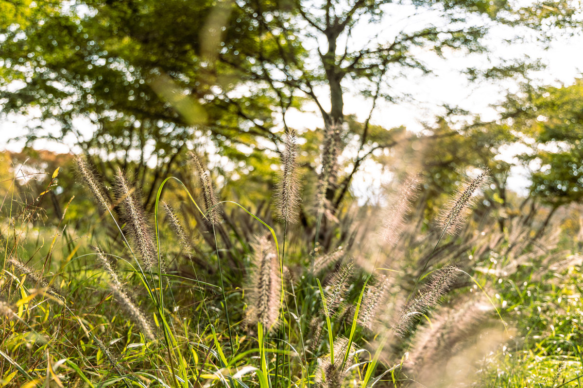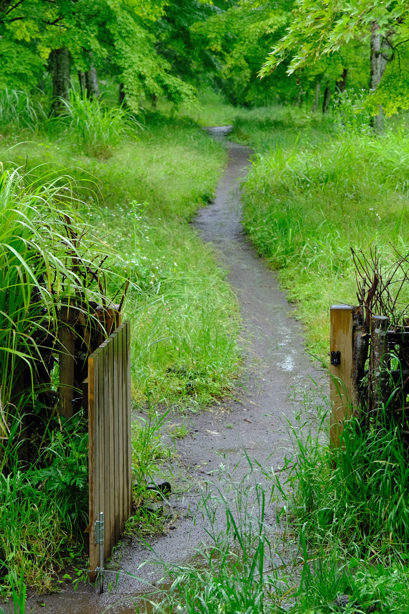 「丈のある草に囲まれている感じが好きで、わざと草を残したり植え込んだりしています。意図的に人間が入れない部分を作ることで自然なサイト間の区切りとしても機能していますが、それよりも心のどこかで原風景を求めているのだと思います。」