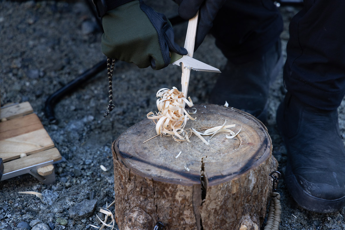 フェザースティックやファイヤースターターを使って火付けをするなど、何気ない作業だが、そういった無心でゆっくりとした時間を過ごすことが、seven_campさんにとってキャンプの心地良い過ごし方のようだ。