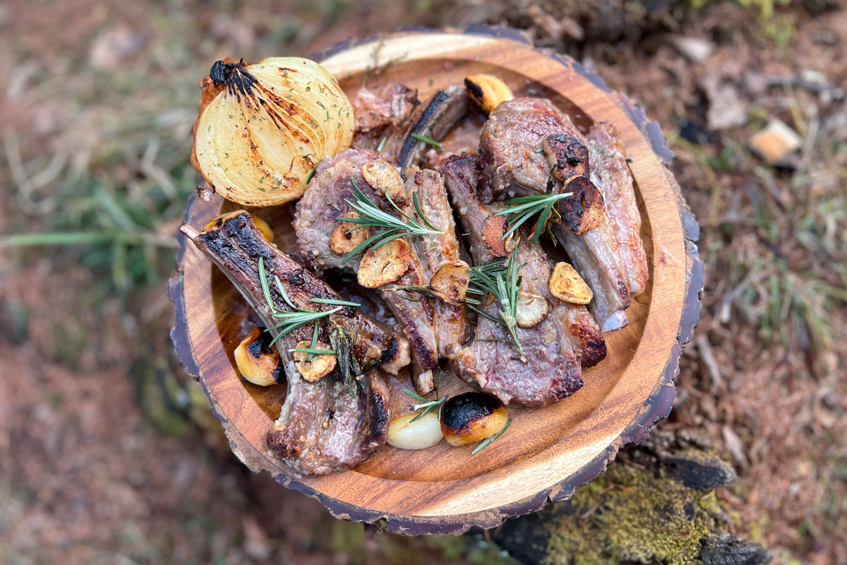 「最近はラムチョップにハマっています。普通にオリーブオイルを引いて、ニンニクをスライスして、塩麹に浸けたラムチョップをローズマリーで焼くのが美味しくて(笑)。焚き火の上に鉄板やフライパンを乗っけて簡単に出来るっていうのも良くて。」
