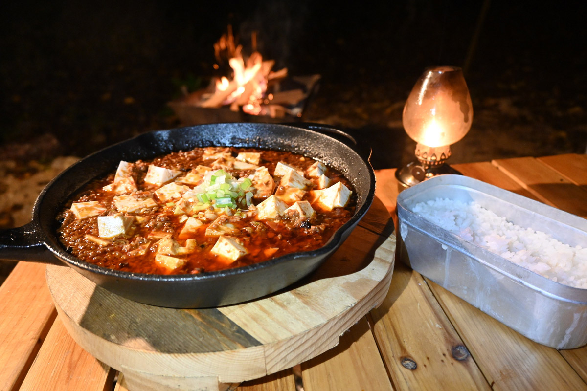 「冬キャンプでは鍋物、汁物が多いですが、参鶏湯や麻婆豆腐には花椒とか鷹の爪とかの調味料で自分好みに辛めに作ってみたら美味しくて。体の芯から温まるし、冬のキャンプ飯で辛いのがお好きな方ならオススメです。」