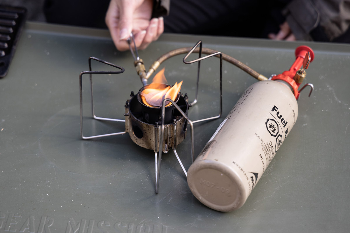MSRの名作、ガソリンを燃料とするシングルバーナー「ドラゴンフライ」も重宝している。
