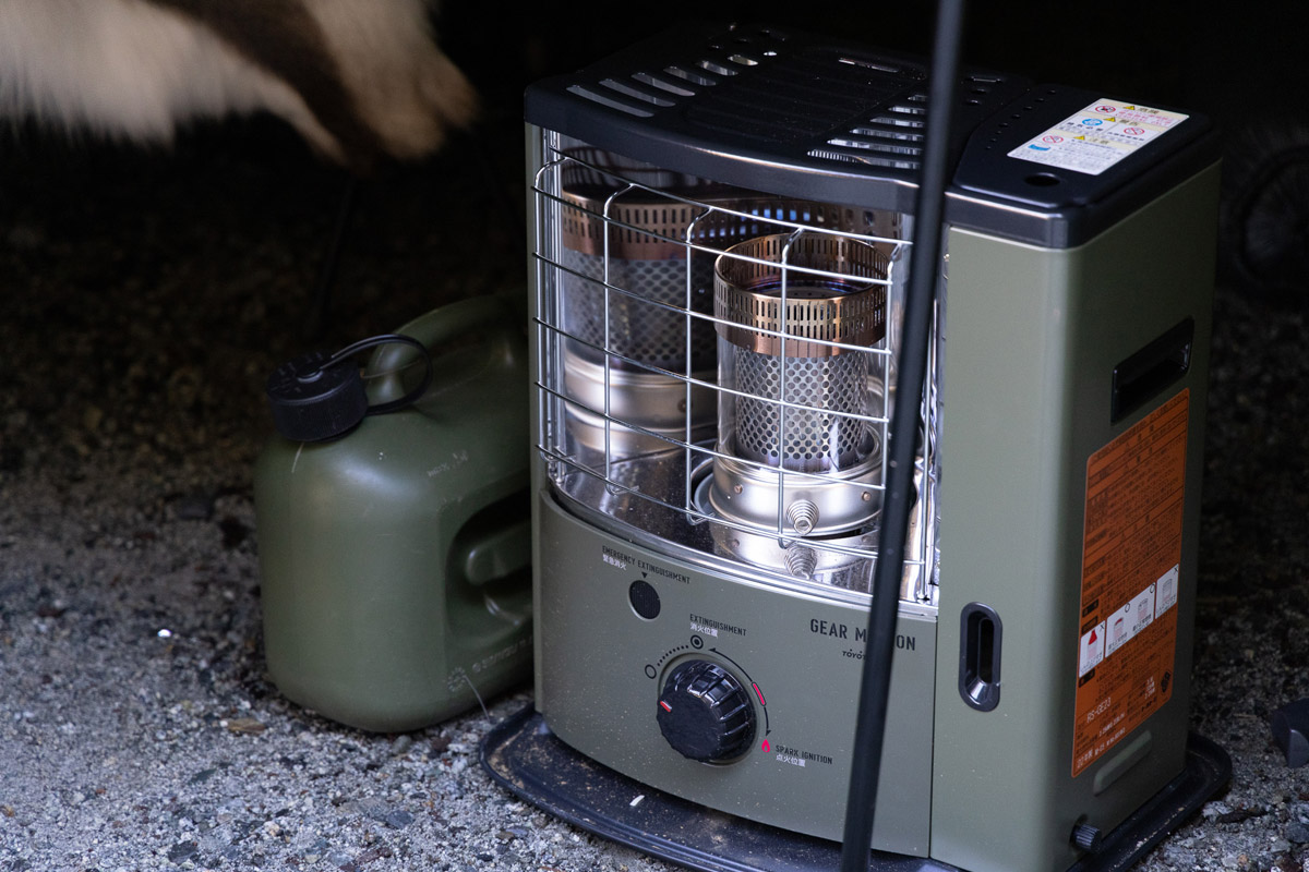 「薪ストーブを使うこともあるのですが、やはり寝ている時に寒くなってしまうので、石油ストーブも併用しています。ダブルで持っていくと車がパンパンになるのですが、快適な睡眠を得るために(笑)」