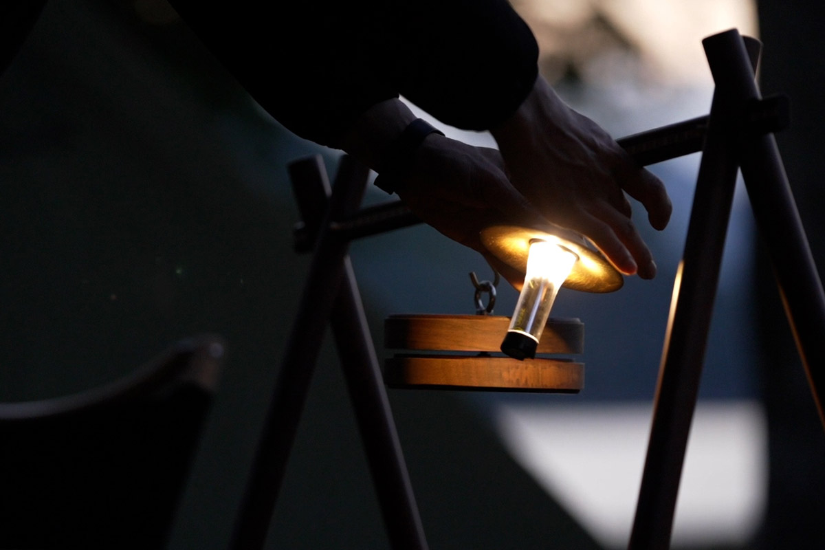 「ランタン上部からシェードをただ被せるだけです。ランタンと木の温もりで上質な空間を作り出してくれます。こちらのスタンドは元々『シェードの展示台が必要だね』というところから商品化に繋がったWHAT WE WANTらしい商品でこちらも個人的に思い入れが深いです。」