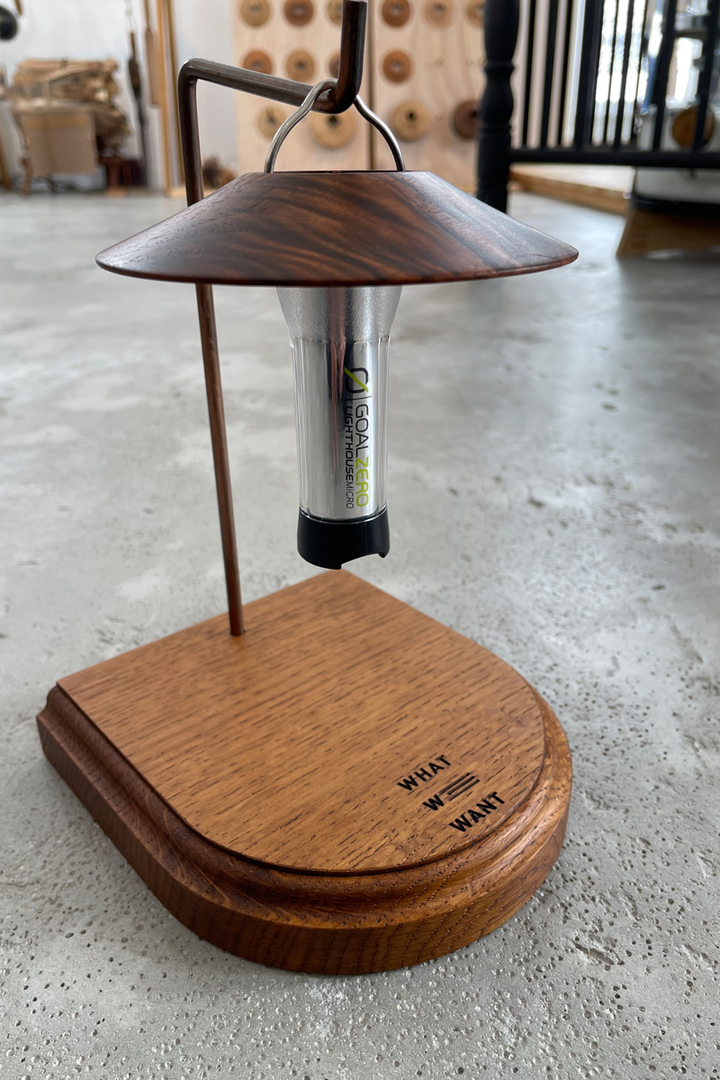 「たまたま仲間内のキャンプイベントでプレゼント企画があって、その当時入手困難だったGOAL ZEROを手に入れたんですよね。素晴らしい商品だなと思ったのと同時に、すぐに木製シェードの完成イメージから構造まで頭の中で出来ました。帰ってすぐ試作を作り、3日くらいで完成し、販売を開始しました(笑)」