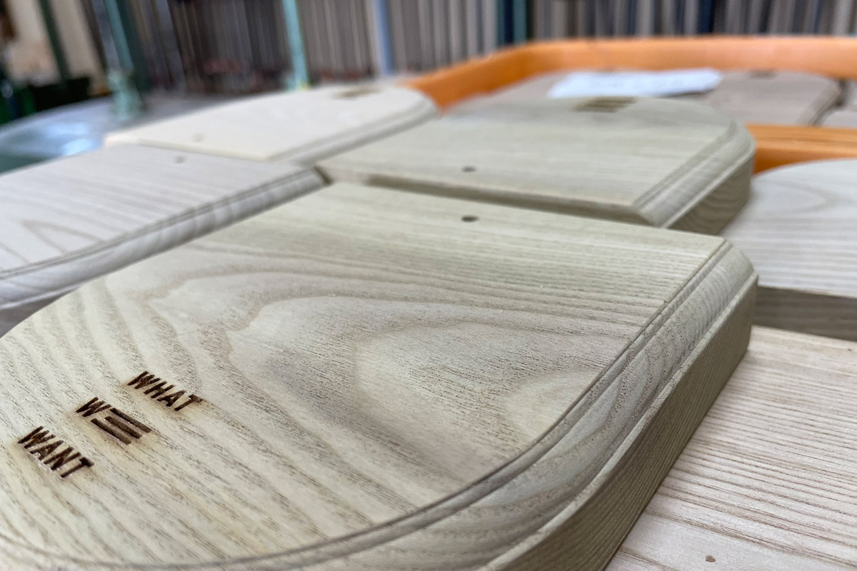 「今インテリア北匠工房全体で20名、製造は13名になりますがその全員で家具とWWW商品に携わっています。小さな工場なので生産ラインを分けられるほどの工場ではありません。なので工場の職人は全ての工程を学んで理解していく必要があります。逆に言うとみんながオールマイティーにモノづくりが出来ることがWHAT WE WANTの強みですかね(笑)。」