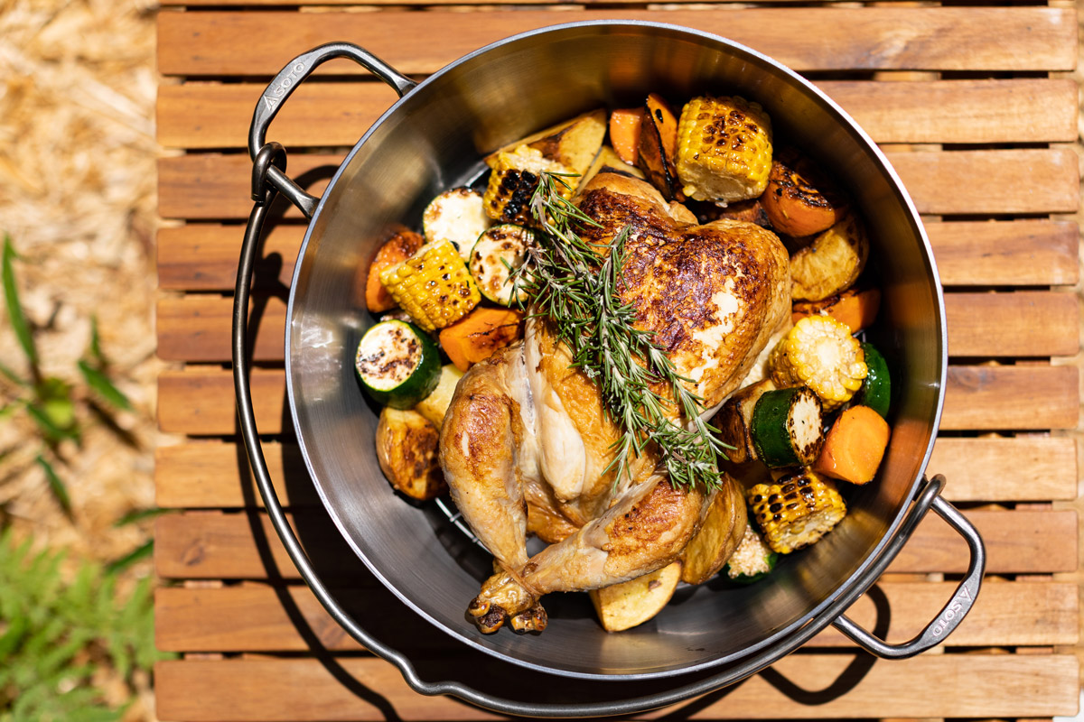 「ダッチオーブンやスキレットを使ったり、鶏を丸焼きしたり、上手に味付けしたり…とかって慣れていないと結構敷居が高いと思うんですよね。我々はその辺は食のプロなのでお手のものです。ミールキットはアウトドアで料理する楽しさはそのままに、気軽においしいキャンプ飯を楽しんで頂けたらと思っています。」