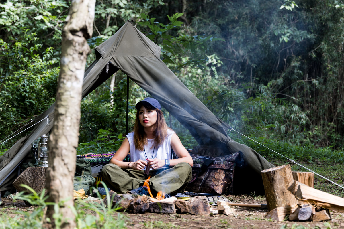 最初の頃は今みたいな男っぽいスタイルじゃなかったんです。グランピングみたいなところから始めたので、大きいテントを買ったりして。オシャレな感じでキャンプをしていました(笑)。やっていくうちに「なんか違うな」と思い初めて、自分の好きな感じのギアを買っていったら、気付いたら今のようなスタイルに(笑)。最近はギアを買うと言うより、いかに減らしていくかって感じです。